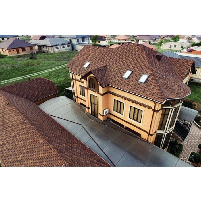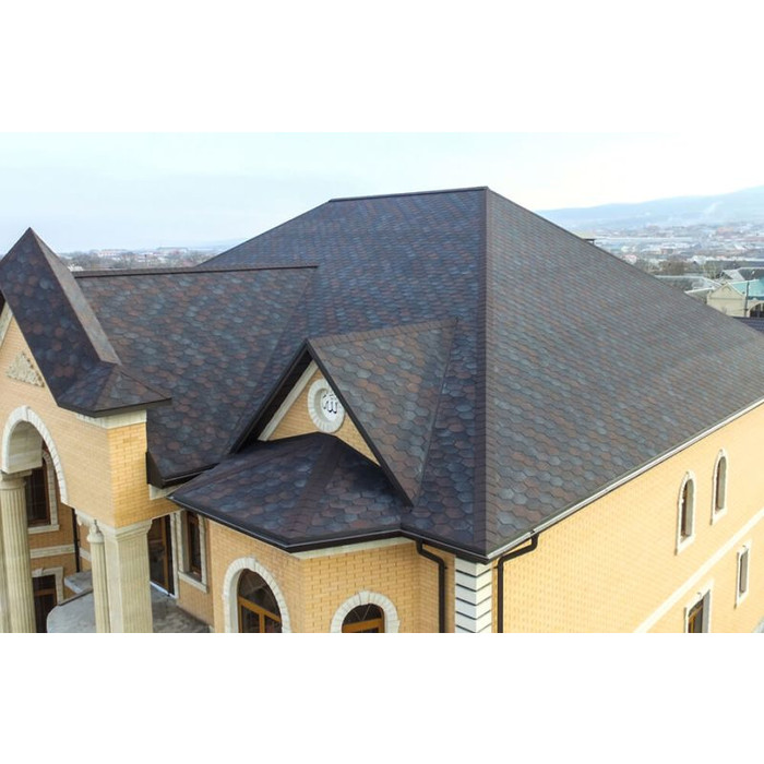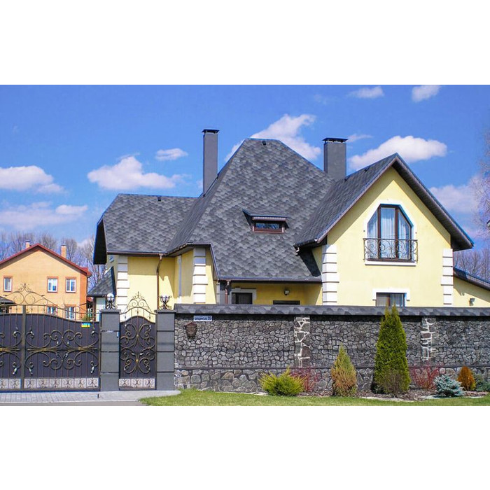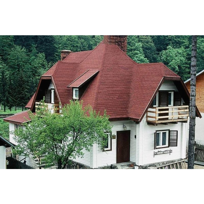 Изготавливается она из битумного полимера SBS (стирол-бутадиен-стирол), что придает мягкой кровле водонепроницаемость и эластичность. Верхний слой этого материала состоит из цветной минеральной крошки, придающей ему неповторимые оттенки и делающей его поверхность шероховатой. Благодаря наличию инновационной самоклеющейся системы после монтажа гибкой черепицы стыки швов становятся герметичными. В продаже черепица торговой марки Катепал представлена несколькими коллекциями и большим разнообразием цветов. Каждая коллекция представлена готами определенной формы и размеров. Вес 1 м2 такой черепицы равен всего 8 кг.